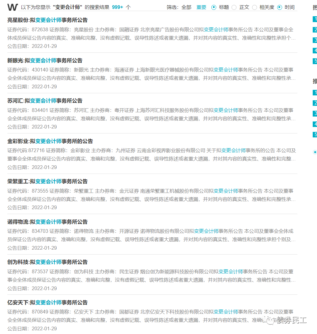 每年年報的質(zhì)量對于上市公司和債券發(fā)行人來說至關(guān)重要,能夠直接影響公司在市場上的認可度。在中介機構(gòu)違規(guī)就會被處罰的嚴監(jiān)管時代,選擇一個合適的會計師事務所就更顯得異常重要。網(wǎng)上隨手一搜,上市公司和債券發(fā)行人變更會計師事務所的公告隨處可見。