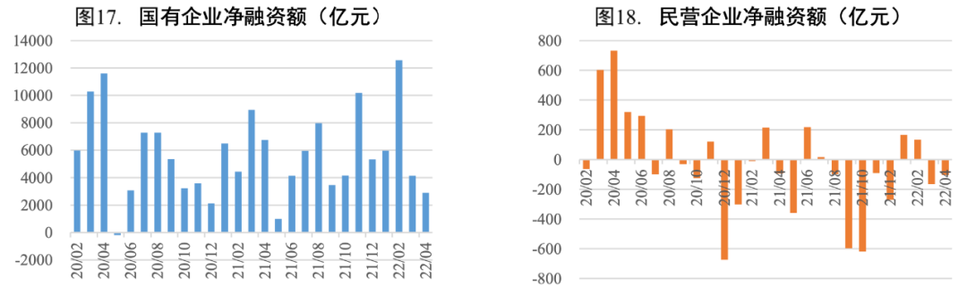 信貸總量走弱結(jié)構(gòu)欠佳,實(shí)體經(jīng)濟(jì)融資需求持續(xù)偏弱。4月金融機(jī)構(gòu)新增人民幣貸款6454億元,同比少增8231億元;4月末金融機(jī)構(gòu)人民幣貸款余額201.66萬億元,同比增長10.9%,增速分別比上月末和上年同期低0.5個(gè)和1.4個(gè)百分點(diǎn)。從結(jié)構(gòu)看,4月居民短期、中長期貸款新增規(guī)模均為負(fù),同比分別少增2221億元、5232億元,反映出受疫情沖擊和房地產(chǎn)市場(chǎng)預(yù)期弱化影響,居民消費(fèi)意愿和購房意愿依舊偏弱。企業(yè)中長期貸款同比少增3953億元,企業(yè)短期貸款、票據(jù)融資同比分別少減199億元、多增2437億元,顯示企業(yè)貸款結(jié)構(gòu)進(jìn)一步短期化。4月下旬以來票據(jù)轉(zhuǎn)貼現(xiàn)利率大幅下行,表明銀行票據(jù)沖量行為仍在延續(xù),反映出受疫情沖擊、要素短缺、原材料成本上漲等因素影響,企業(yè)特別是中小微企業(yè)經(jīng)營困難增多,有效融資需求明顯下降。后續(xù)看,隨著國內(nèi)疫情逐步緩和,疊加各類穩(wěn)增長政策提速發(fā)力,強(qiáng)化對(duì)重點(diǎn)領(lǐng)域和薄弱環(huán)節(jié)支持力度,實(shí)體經(jīng)濟(jì)融資需求好轉(zhuǎn),信貸總量及結(jié)構(gòu)或?qū)⒅鸩礁纳啤?/p>