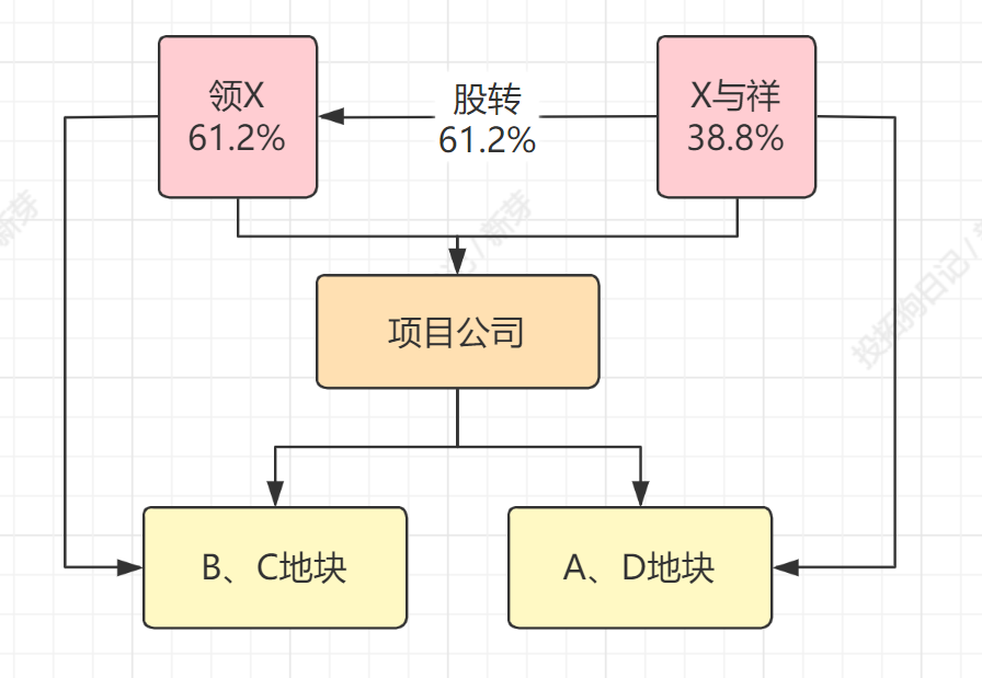 即,領(lǐng)地收購(gòu)61.2%的股權(quán),但雙方約定“該部分股權(quán)”對(duì)應(yīng)“B、C地塊100%開(kāi)發(fā)收益權(quán)”。瑞與祥剩下38.8%對(duì)應(yīng)A、D地塊開(kāi)發(fā)收益權(quán)。
