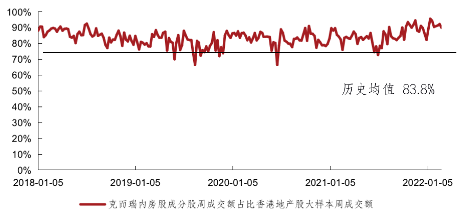 備注:香港地產(chǎn)股大樣本篩選邏輯:主業(yè)為地產(chǎn),業(yè)務(wù)主要來自大陸或者大陸是重要的發(fā)展區(qū)域,剔除純投資型公司,不含物業(yè)管理及其他地產(chǎn)服務(wù)公司,樣本數(shù)量共計(jì)122家