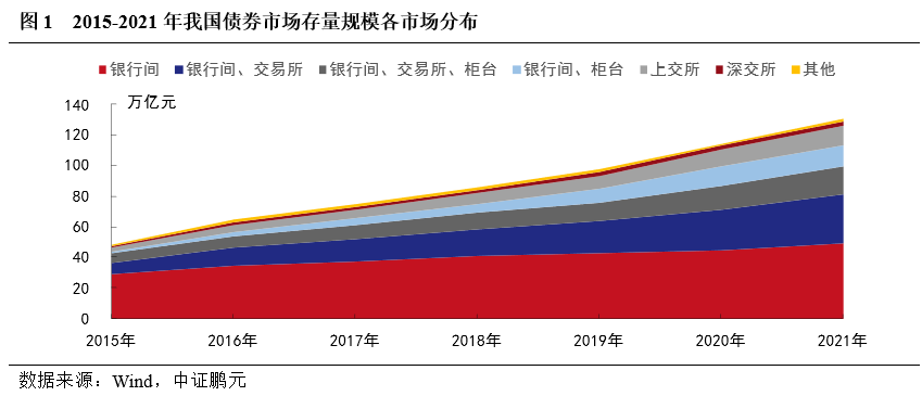 1. 我國債券市場以銀行間市場為主、交易所市場為輔,交易所市場規(guī)模占比逐年攀升
