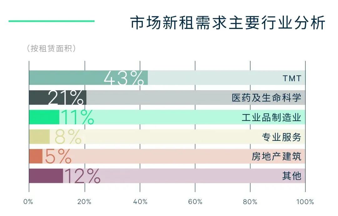 此外,消費品制造和醫藥及生命科學需求穩步增長。中等面積的新租需求漸成主流,季內1,000-5,000平方米的新租交易面積占比達51%,較去年全年的42%有明顯提升。