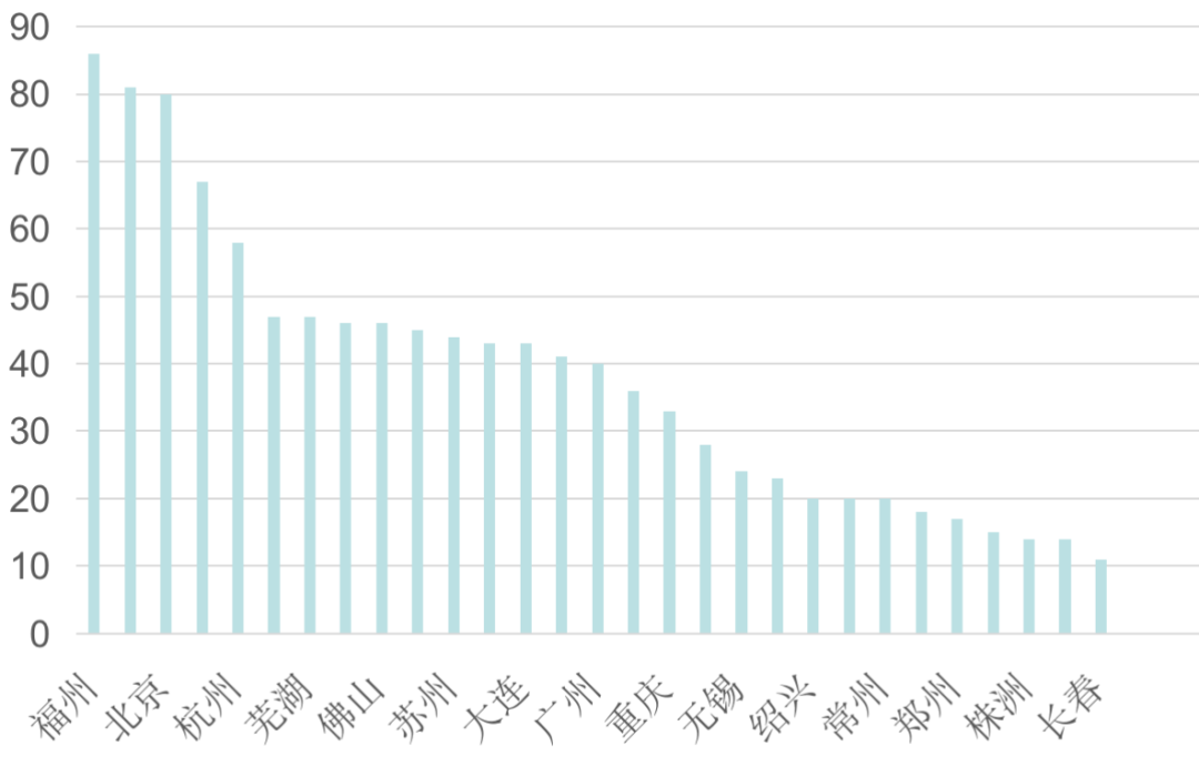 其中深圳數量遙遙領先,廣州位于其后;東莞、佛山、惠州、江門處于第二梯隊,其他城市關注度較低。整體來看熱度集中,深度下沉不夠,廣深“能進則進”,都市圈城市擇機進駐,其他城市“能不進就不進”。