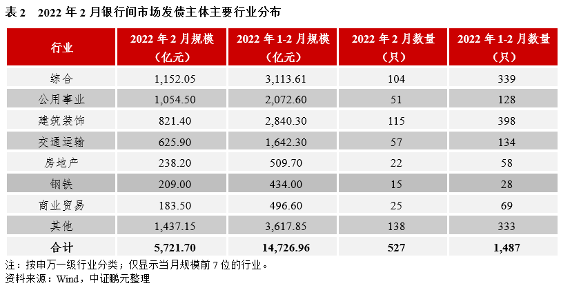 四、 2月綜合和公用事業是銀行間市場債券發行的主力行業