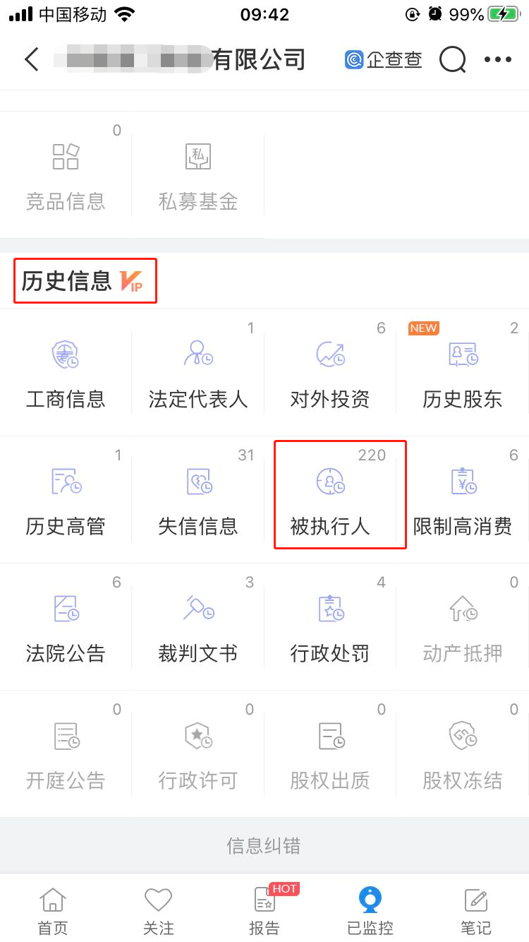 借助【企查查】、【啟信寶】等第三方平臺(tái)中【歷史被執(zhí)行人】功能,進(jìn)行信息分析。第三方平臺(tái)通過(guò)對(duì)執(zhí)行網(wǎng)的公開數(shù)據(jù)進(jìn)行比對(duì),將已結(jié)案撤網(wǎng)的執(zhí)行案件歸入【歷史被執(zhí)行人】中。