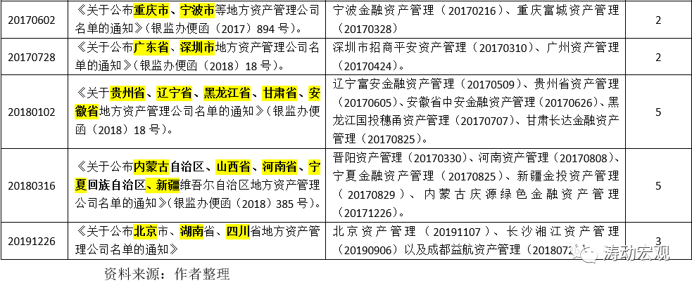 (3)2016年10月銀監會發布的《關于適當調整地方資產管理公司有關政策的函》(銀監辦便函[2016]1738號)允許各省可以增設一家地方AMC,并且在債務重組之外允許以對外轉讓等方式處置不良資產,且對受讓主體不受地域限制。