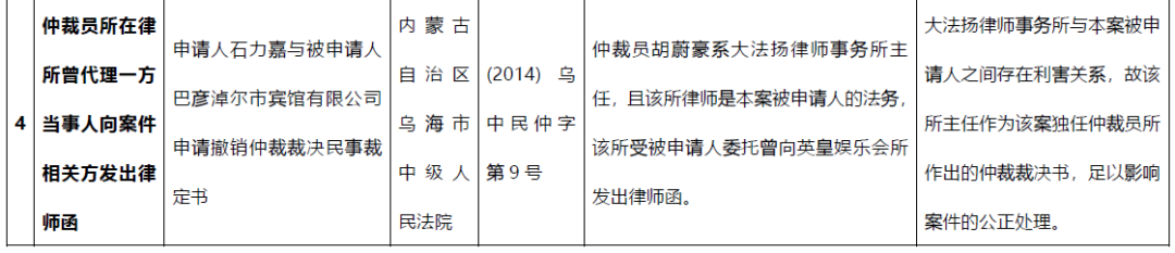 (2)仲裁員及其所在或所擁有的律師事務(wù)所或工作組織所從事的可能讓人對(duì)其獨(dú)立性或中立性提出合理懷疑的活動(dòng);