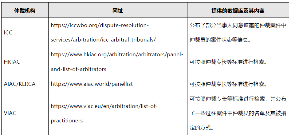1. 仲裁機(jī)構(gòu)的數(shù)據(jù)庫(kù)