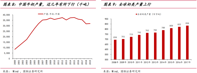 據國聯證券研究顯示,中國原奶產量僅占全球約3.8%,進口依存度或超30%。