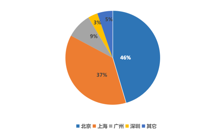 從重點城市成交情況來看,京滬繼續為全國大宗交易絕對主力城市,兩個城市交易總額占比超80%,其中北京總成交額約213.6億元,占比46%領跑全國;上??偝山活~第二175.7億元,占比近37%。