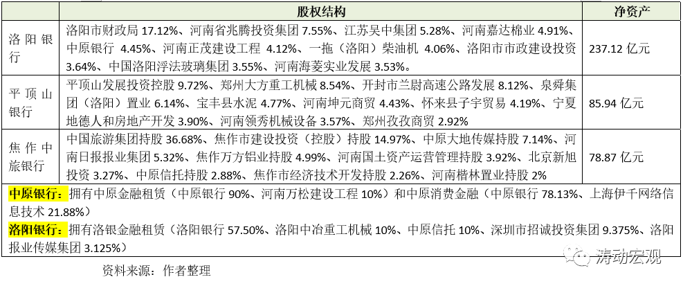 3、從被合并的三家銀行來看,股權結構還是比較復雜,且三家銀行的凈資產合計達到401.93億元,即便剔除掉河南當地政府持有的股權,中原銀行吸收這三家銀行應也需要付出不少代價。當然,也極有可能會以換股的形式合并,這樣三家銀行的原有股東成為中原銀行的新股東,對價將會少很多。