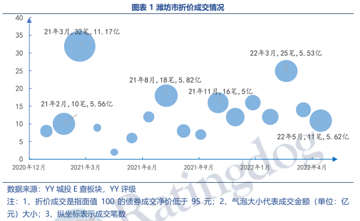 (1)從成交來看,濰坊折價(jià)成交頻繁(2022年5月共11筆折價(jià),金額合計(jì)5.62億元),規(guī)模甚至高于湖南等省份全省,主要集中在濱海經(jīng)開區(qū)和高密市。