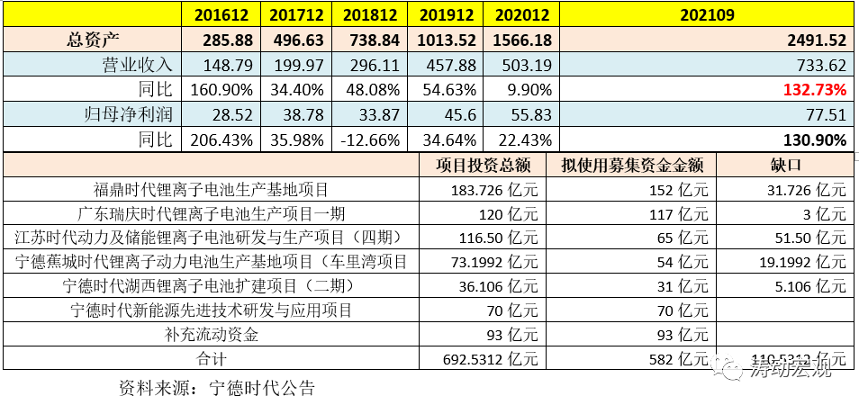3、此次定增擬投項目的資金仍有110.53億元的缺口,寧德時代計劃擬通過自有資金、經營積累和銀行借款等方式給予解決。
