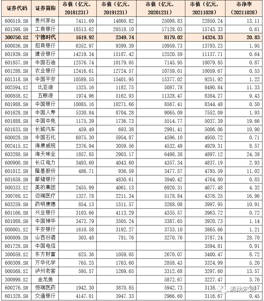 2018年-2020年底寧德時代的市值僅分別位居A股全市場第33位、第34位和第10位,這說明寧德時代的市值和排名自2020年以來上升非常多。