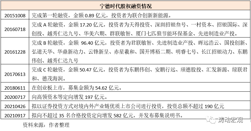 三、寧德時代歷次股權融資情況