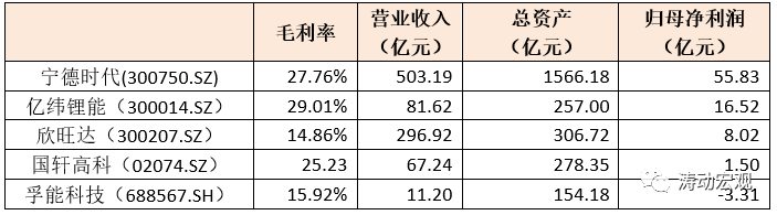(四)目前同行業與寧德時代可比的公司主要有億緯鋰能、欣旺達、國軒高科、孚能科技幾家。從對比上看,寧德時代的規模與業績優勢還是比較明顯的。