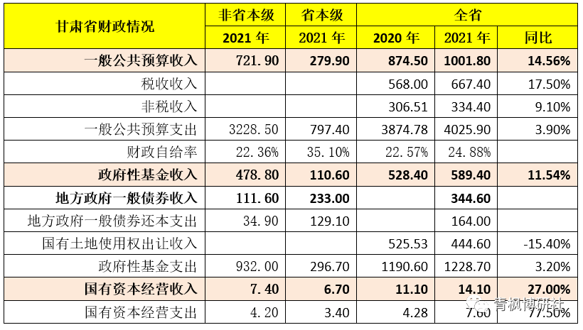 3、甘肅地區的財政對非稅收入的依賴度很高。例如,2021年全年1001.80億元的公共預算收入中,非稅收入占比高達33%,幾乎是稅收收入的一半。