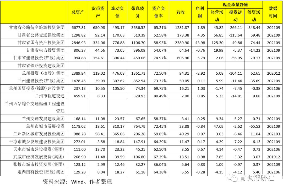 (一)城投:共有27家城投平臺,蘭州地區(含蘭州新區)有10家