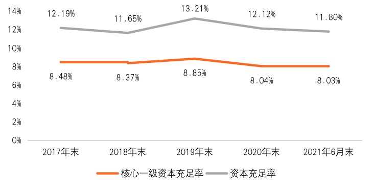 2021下半年,徽商銀行供應(yīng)鏈金融業(yè)務(wù)繼續(xù)創(chuàng)新發(fā)展。9月18日,徽商銀行與供應(yīng)鏈票據(jù)市場(chǎng)頭部企業(yè)簡(jiǎn)單匯聯(lián)合推出全國(guó)首例“供應(yīng)鏈票據(jù)+擔(dān)保”融資模式,在供應(yīng)鏈票據(jù)融資環(huán)節(jié)中引入蕪湖民強(qiáng)擔(dān)保公司,通過(guò)第三方擔(dān)保滿足銀行授信審批要求。在該模式下,商票貼現(xiàn)速度慢、擔(dān)保措施難落實(shí)等問(wèn)題得到解決,同時(shí),銀行能夠以低于市場(chǎng)平均價(jià)格30bp-50bp的貼現(xiàn)利率為中小企業(yè)提供票據(jù)融資,有效提升了融資便利性,降低了企業(yè)融資成本。值得關(guān)注的是,2021年7月,徽商銀行申報(bào)的“基于區(qū)塊鏈技術(shù)的綠色信貸服務(wù)”項(xiàng)目入選安徽省金融科技創(chuàng)新監(jiān)管工具第一批創(chuàng)新應(yīng)用。《金融科技創(chuàng)新應(yīng)用聲明書》顯示,該項(xiàng)目將綜合運(yùn)用區(qū)塊鏈、大數(shù)據(jù)、人工智能等技術(shù),構(gòu)建應(yīng)收賬款融資服務(wù)平臺(tái),通過(guò)應(yīng)收賬款簽發(fā)、流轉(zhuǎn)、拆分、兌付等服務(wù),盤活企業(yè)資產(chǎn),提升新能源產(chǎn)業(yè)鏈上企業(yè)的資金流動(dòng)性,助力綠色經(jīng)濟(jì)發(fā)展。該項(xiàng)目于9月27日正式運(yùn)營(yíng),預(yù)計(jì)服務(wù)中小微企業(yè)500家。三、內(nèi)控風(fēng)險(xiǎn)暴露:資本充足率下滑,業(yè)務(wù)違規(guī)多次被罰8月上旬,銀保監(jiān)會(huì)發(fā)布的銀行業(yè)保險(xiǎn)業(yè)主要監(jiān)管指標(biāo)數(shù)據(jù)顯示,2021年二季度末,商業(yè)銀行核心一級(jí)資本充足率為10.50%,資本充足率為14.48%。相比之下,徽商銀行2021年6月末的核心一級(jí)資本充足率8.03%,資本充足率11.80%,分別較2020年末下降0.32個(gè)百分點(diǎn)和0.01個(gè)百分點(diǎn)。這一表現(xiàn)不僅遠(yuǎn)低于行業(yè)平均水平,從近5年總體變化趨勢(shì)來(lái)看,還在逐漸逼近監(jiān)管的紅線。圖 6:徽商銀行2017-2021年資本充足率情況資料來(lái)源:徽商銀行財(cái)報(bào),零壹智庫(kù)整理徽商銀行資本金緊張的背后,一方面是源于不良資產(chǎn)大幅增加,加大了撥備計(jì)提和處置力度;另一方面則是資本金補(bǔ)充面臨難題。作為補(bǔ)充資本金的一大重要渠道,徽商銀行多年前就在計(jì)劃A股IPO,但近年來(lái)發(fā)生的股東爭(zhēng)端和股權(quán)糾紛等問(wèn)題,卻成為其回歸A股的一大阻礙。徽商銀行早在2015年就提交了A股上市申請(qǐng),經(jīng)歷三年排隊(duì),卻在2018年2月因股東和管理層發(fā)生爭(zhēng)議而撤銷;2018年末,在進(jìn)行了高管變動(dòng)和董事會(huì)換屆之后,徽商銀行重啟了A股上市計(jì)劃,但股東之間的紛爭(zhēng)仍未消解。徽商銀行大股東中靜新華資產(chǎn)管理有限公司(簡(jiǎn)稱“中靜新華”)、中靜四海實(shí)業(yè)有限公司(簡(jiǎn)稱“中靜四海”)與杉杉控股、杉杉集團(tuán)在2019年8月簽訂了《關(guān)于轉(zhuǎn)讓徽商銀行股份有限公司股份及中靜四海實(shí)業(yè)有限公司股權(quán)之框架協(xié)議》,但2020年6月,“中靜系”和“杉杉系”因協(xié)議履行發(fā)生爭(zhēng)議而互訴公堂,案件目前仍在審理中。2021年3月,徽商銀行發(fā)布公告稱,延長(zhǎng)A股發(fā)行議案,申請(qǐng)A股發(fā)行15億股。為確保A股發(fā)行工作能繼續(xù)開展,該行擬將延長(zhǎng)A股發(fā)行方案的有效期,即延長(zhǎng)期限自2021年6月30日起至2022年6月29日止。(二)罰單頻現(xiàn)、高管頻換,折射內(nèi)部治理問(wèn)題除了資本金和股權(quán)的問(wèn)題,徽商銀行內(nèi)部治理也有待完善。零壹智庫(kù)根據(jù)銀保監(jiān)會(huì)官網(wǎng)披露的通知進(jìn)行統(tǒng)計(jì),2021年初至9月末,該行已有10余家分支機(jī)構(gòu)被銀保監(jiān)部門處罰,合計(jì)罰款金額500多萬(wàn)元,20多名相關(guān)負(fù)責(zé)人獲得警告、罰款、禁止終身從事銀行業(yè)工作等不同程度的處罰,具體違規(guī)事實(shí)包括:違規(guī)發(fā)放流動(dòng)資金貸款、違規(guī)管理使用印章、未按規(guī)定進(jìn)行貸款資金支付管理、服務(wù)收費(fèi)質(zhì)價(jià)不符等。徽商銀行的人事變動(dòng)也較為頻繁。2021年初,該行總行行長(zhǎng)助理、徽銀理財(cái)董事長(zhǎng)夏敏被紀(jì)檢部門帶走接受調(diào)查,5月19日辭去該行相關(guān)職務(wù);2月聘任張居中為副行長(zhǎng);4月吳學(xué)民辭任徽商銀行董事長(zhǎng),由嚴(yán)琛接任。此外,2021上半年還有零售銀行總監(jiān)、常務(wù)副行長(zhǎng)、監(jiān)事、董事等多名高管離任。