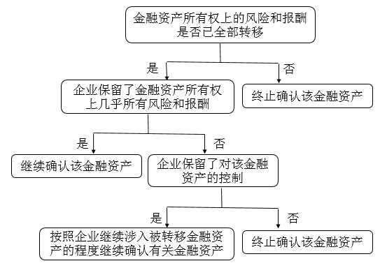 對于以前就在資產(chǎn)負債表中的資產(chǎn),打包成ABS后怎么實現(xiàn)出表呢?根據(jù)2018年開始實施的財政部公布的《企業(yè)會計準則第23號——金融資產(chǎn)轉(zhuǎn)移》的規(guī)定,基礎(chǔ)資產(chǎn)能否出表,關(guān)鍵要看基礎(chǔ)資產(chǎn)(即金融資產(chǎn))所有權(quán)上的風險和報酬是否已經(jīng)轉(zhuǎn)移以及企業(yè)是否保留了對該基礎(chǔ)資產(chǎn)的控制,如下圖: