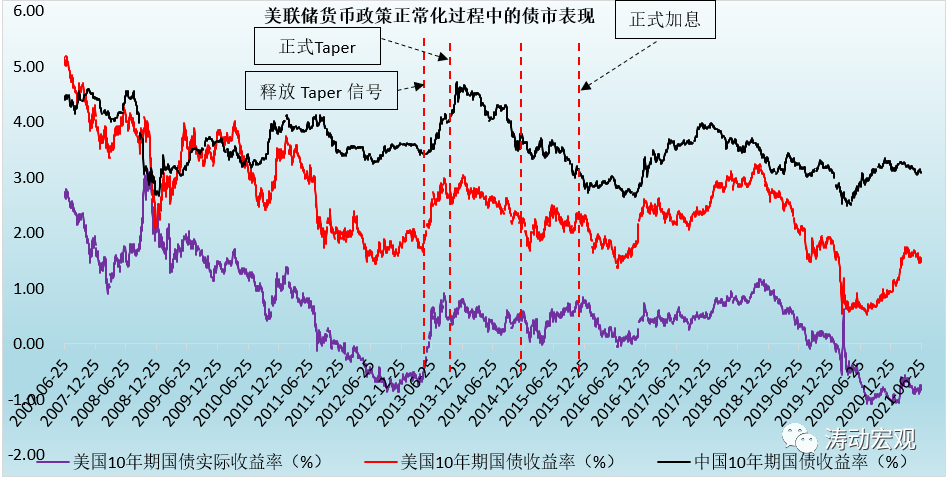 1、在美聯儲向市場釋放Taper信號和正式啟動Taper過程中,美國10年期國債收益率趨于快于上行。