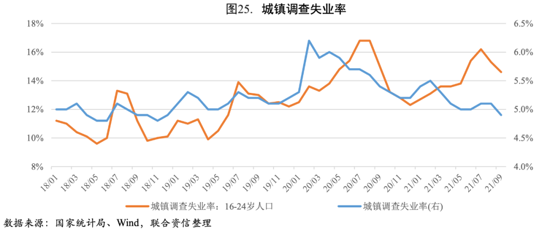 2021年以來就業(yè)形勢總體基本穩(wěn)定,調(diào)查失業(yè)率呈逐季穩(wěn)中有降的趨勢。前三季度,城鎮(zhèn)新增就業(yè)1045萬人,完成全年目標(biāo)任務(wù)的95%;城鎮(zhèn)調(diào)查失業(yè)率均值為5.2%,低于全年5.5%左右的預(yù)期目標(biāo)。從結(jié)構(gòu)看,重點群體就業(yè)情況在三季度出現(xiàn)改善,其中16-24歲城鎮(zhèn)人口失業(yè)率結(jié)束自2021年1月以來的連續(xù)上升,自8月開始出現(xiàn)下降;截至三季末,農(nóng)村外出務(wù)工勞動力總量同比增長2%,基本恢復(fù)至疫情前2019年同期水平。就業(yè)形勢基本穩(wěn)定的同時,依然存在新增就業(yè)人數(shù)完成進(jìn)度慢于往年同期的總量壓力,以及部分群體失業(yè)率依然較高和沿海一些地區(qū)缺工的結(jié)構(gòu)性矛盾,四季度保持就業(yè)穩(wěn)定的壓力依然存在。