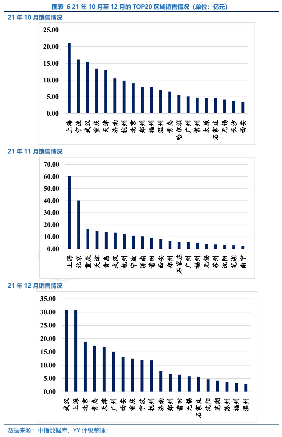 醉臥沙場君莫笑,21年來幾人回。自21年11月起的頭部房企銷售額銳減,展期已成常態的當下,首句作為22年行業定場詩是最好不過。所剩無幾的頭部民營企業面臨幾個難題,一是政策端觸底但再融資端的杯水車薪;二是銷售額逐月下滑;三是下行之際不愿多拿地,而舊地塊/尾盤賣的情況差強人意。