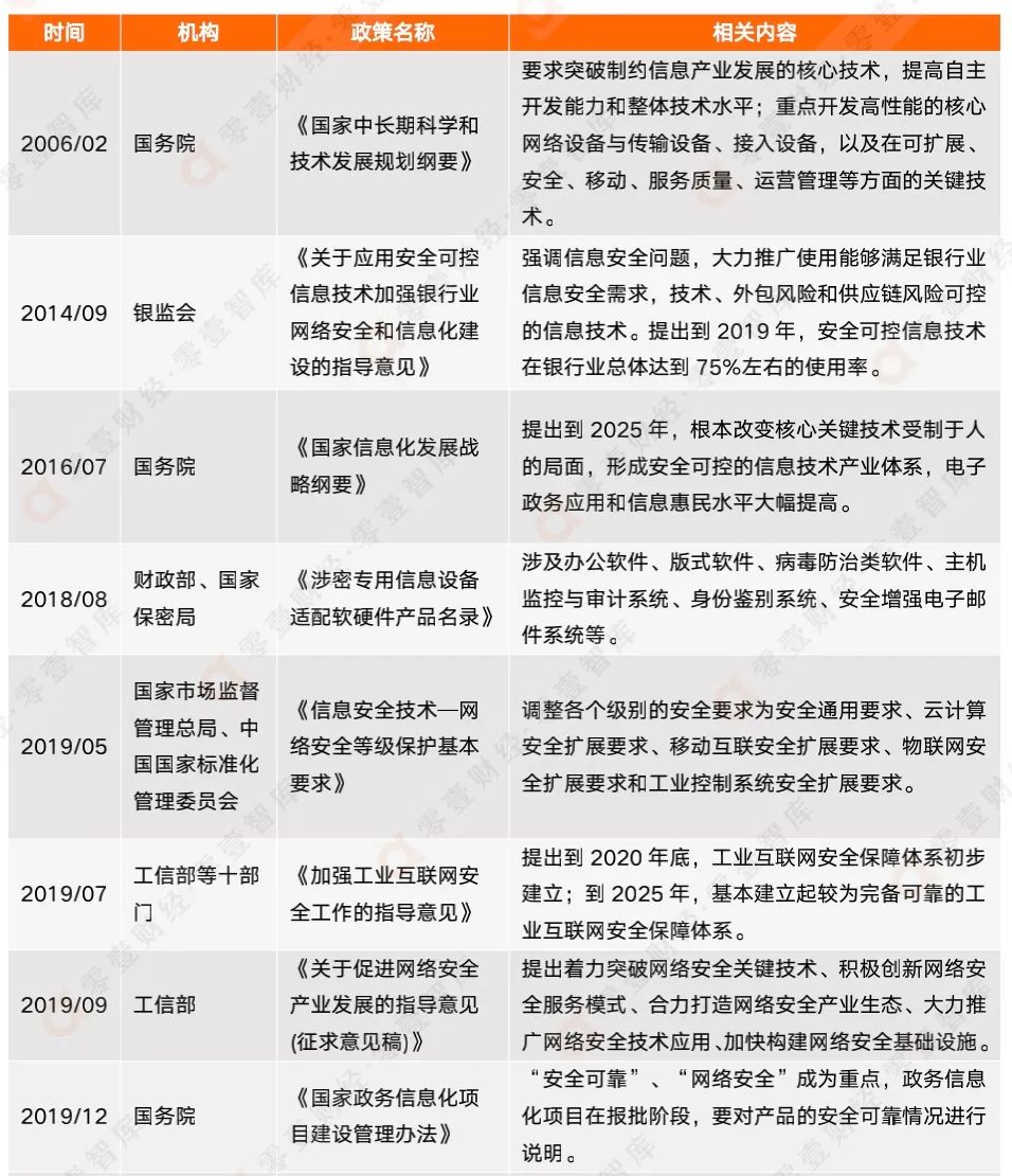 表1:網(wǎng)絡(luò)安全和信息安全相關(guān)信創(chuàng)政策