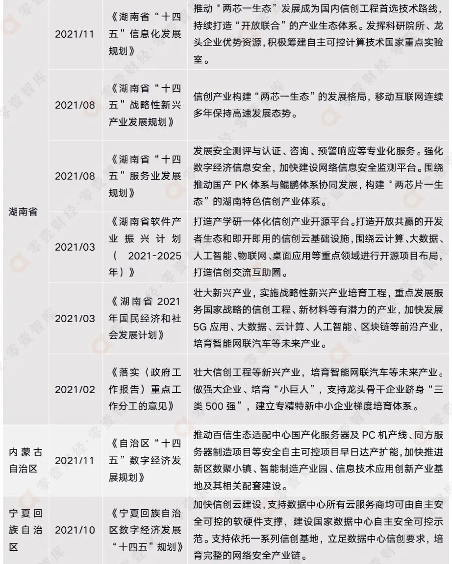 表5:各地方最新信創(chuàng)政策總結(jié)