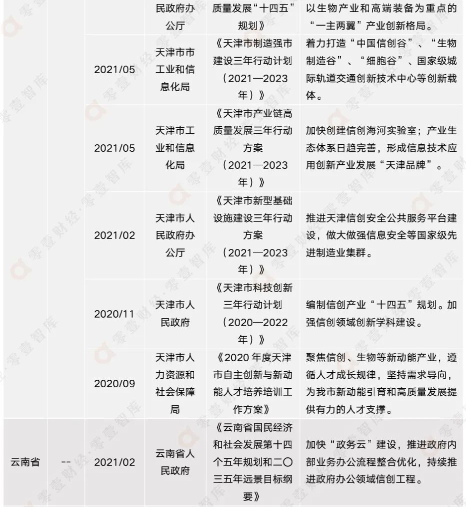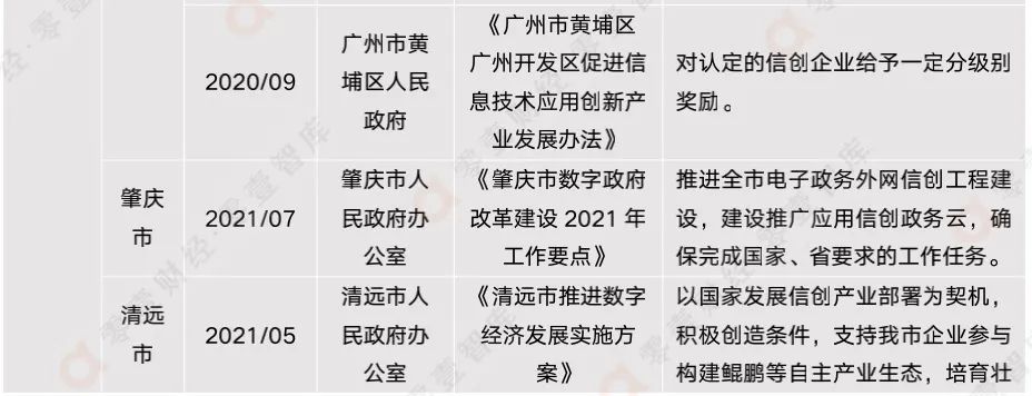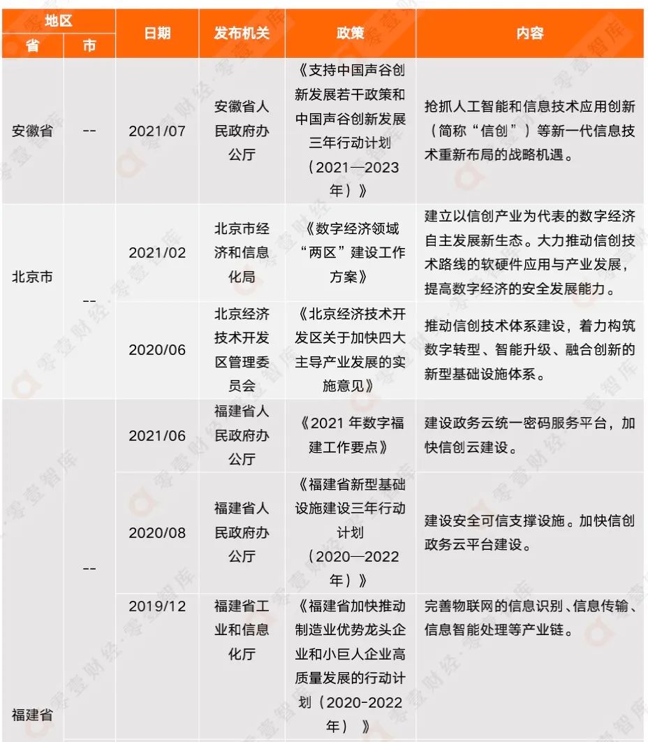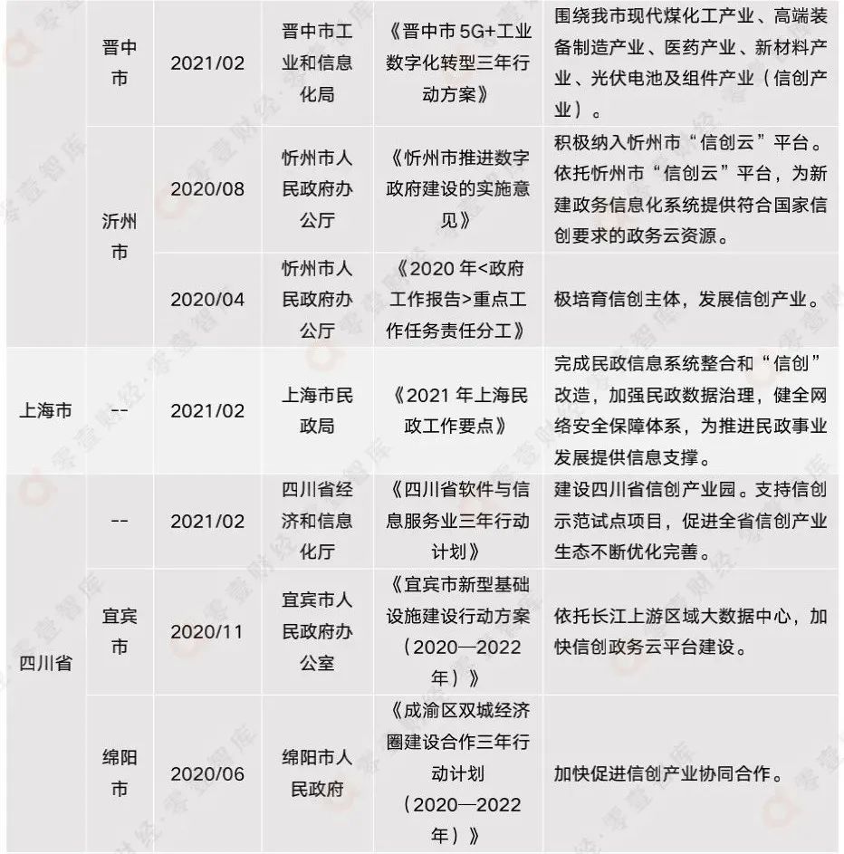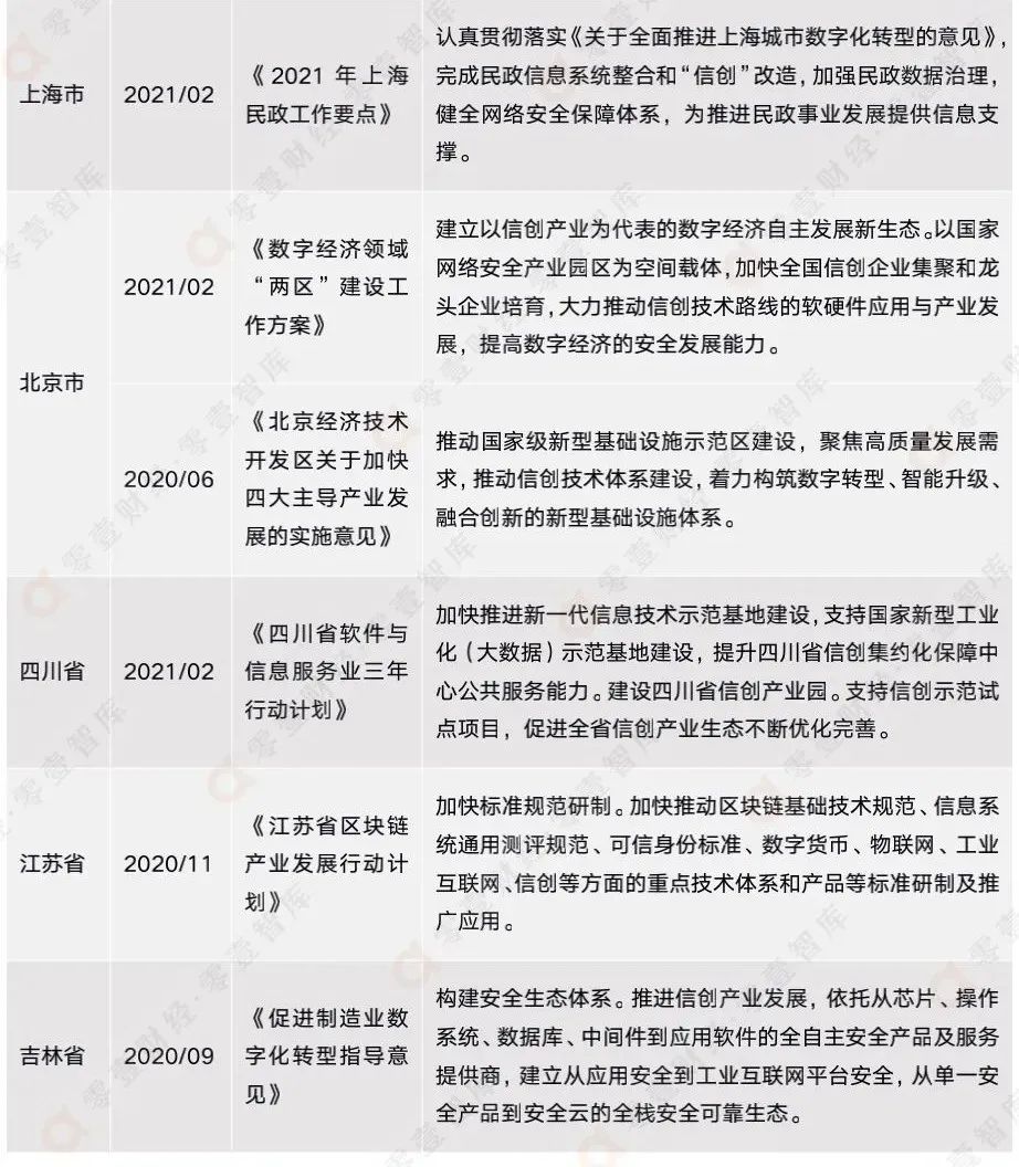 表3:2020年-2021年各地方政府最新信創(chuàng)相關(guān)政策
