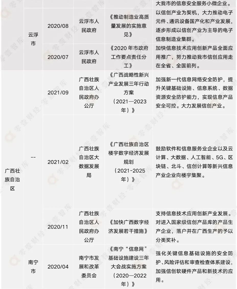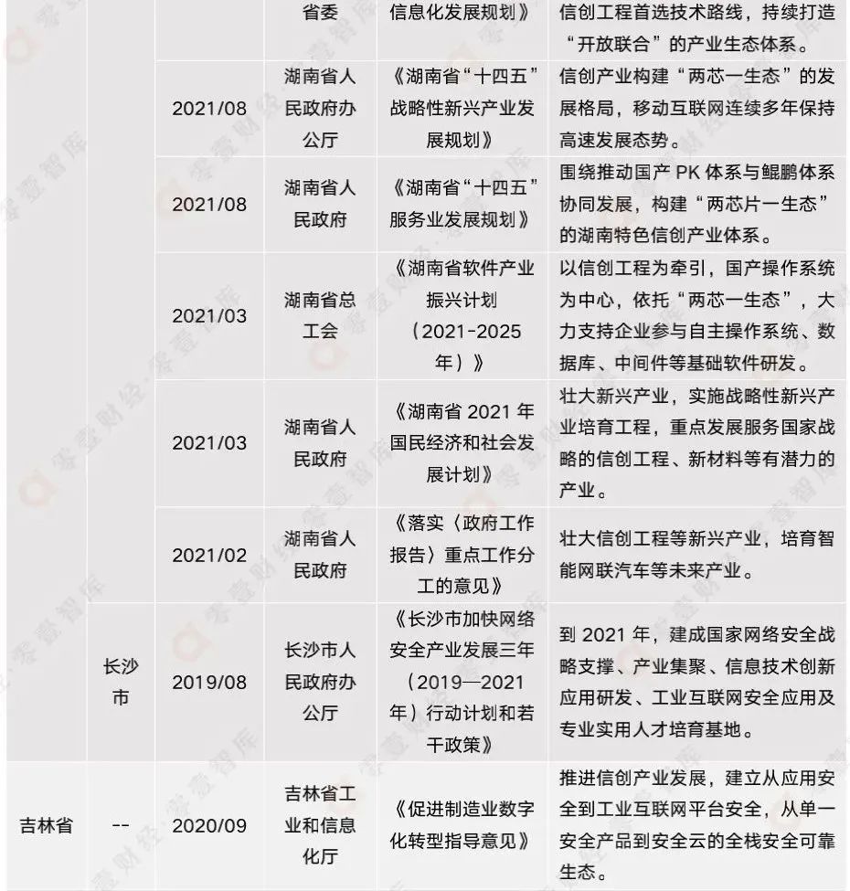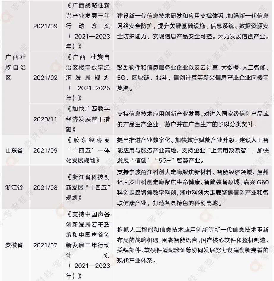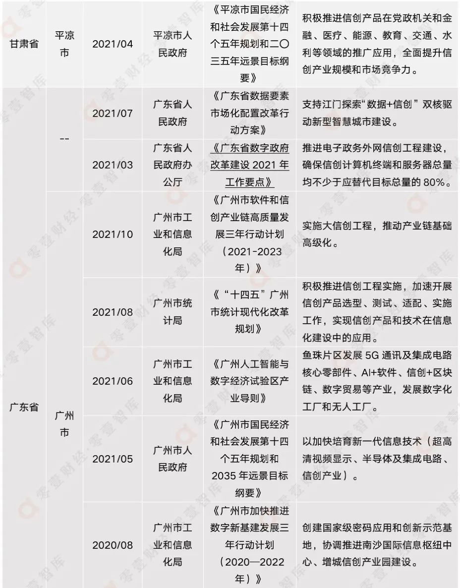 表3:2020年-2021年各地方政府最新信創(chuàng)相關(guān)政策