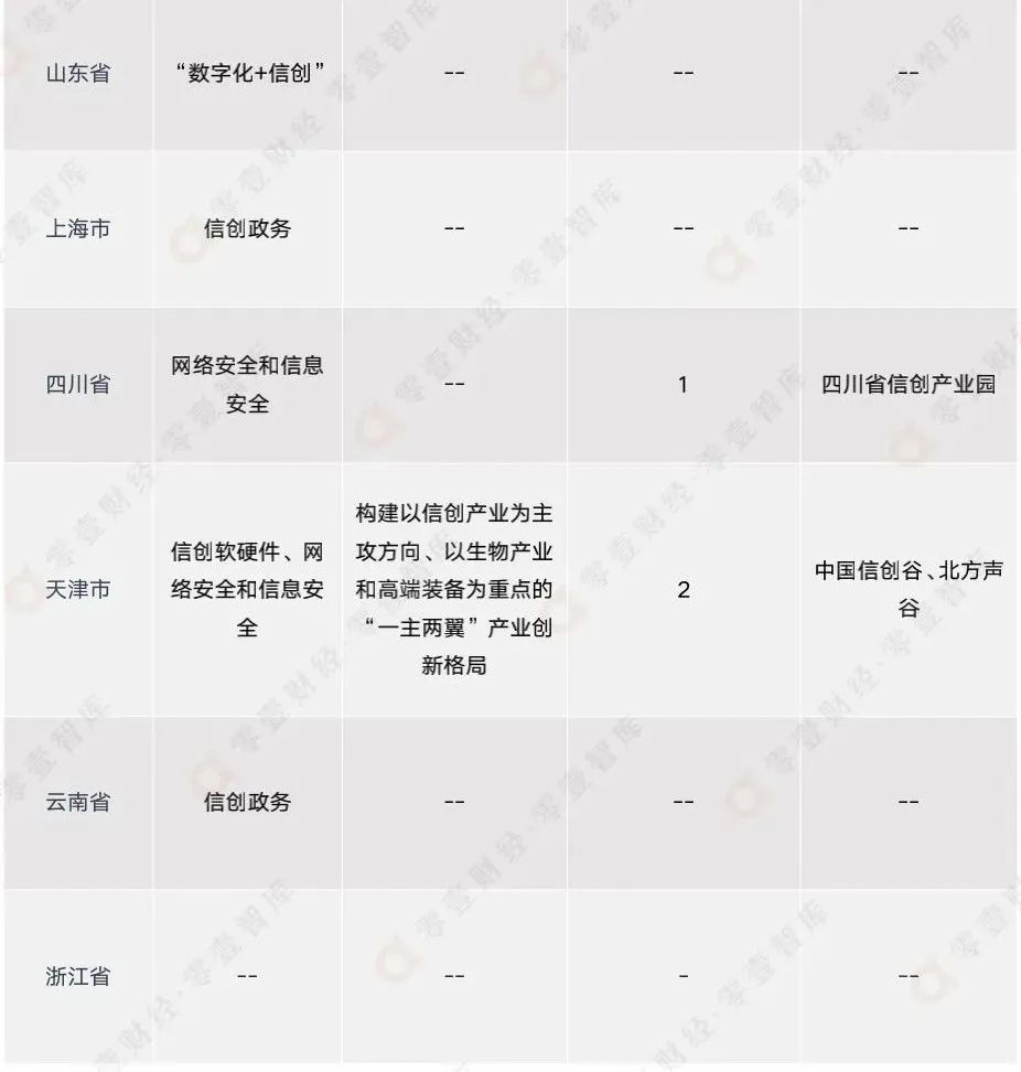 隨著信創(chuàng)發(fā)展到了一定階段,各地政府對當(dāng)?shù)匦艅?chuàng)產(chǎn)業(yè)發(fā)展要求以及路線不可避免地發(fā)生了改變。根據(jù)各地方政府近兩年來發(fā)布的最新的信創(chuàng)相關(guān)政策文件可以看出,以浙江省、北京市、四川省為代表的省級行政區(qū)因地制宜,明確提出在當(dāng)?shù)亟ㄔO(shè)信創(chuàng)基地,依托當(dāng)?shù)仄髽I(yè)、科研院所等優(yōu)勢,在當(dāng)?shù)亟⑿艅?chuàng)生態(tài),避免在信創(chuàng)發(fā)展中后期可能存在的受制于人的情況。以天津市、山東省、安徽省為代表的省級行政區(qū)則加速發(fā)展信創(chuàng)硬軟件,推進(jìn)信創(chuàng)、人工智能、5G+等多熱門領(lǐng)域協(xié)同發(fā)展發(fā)展,力求在信息技術(shù)領(lǐng)域全方面、立體化發(fā)展。
