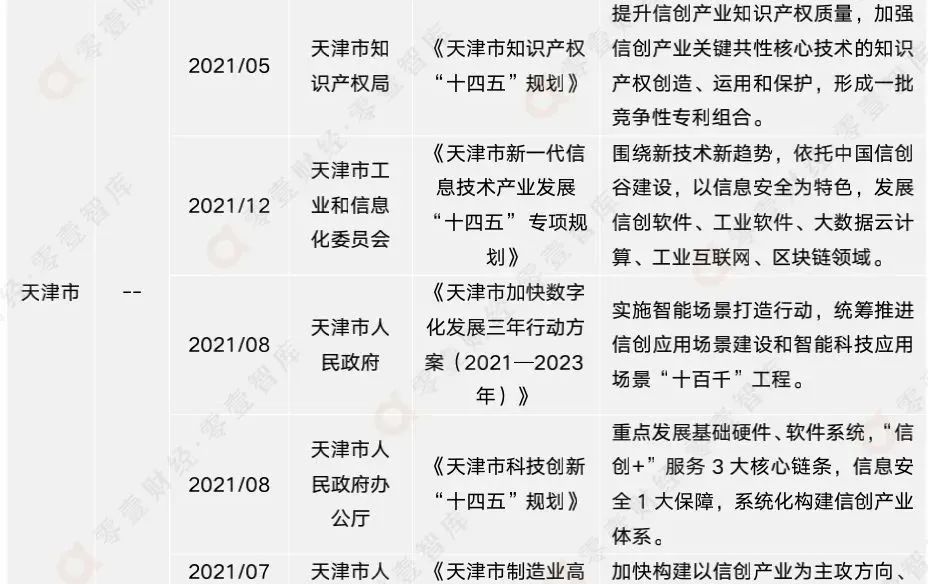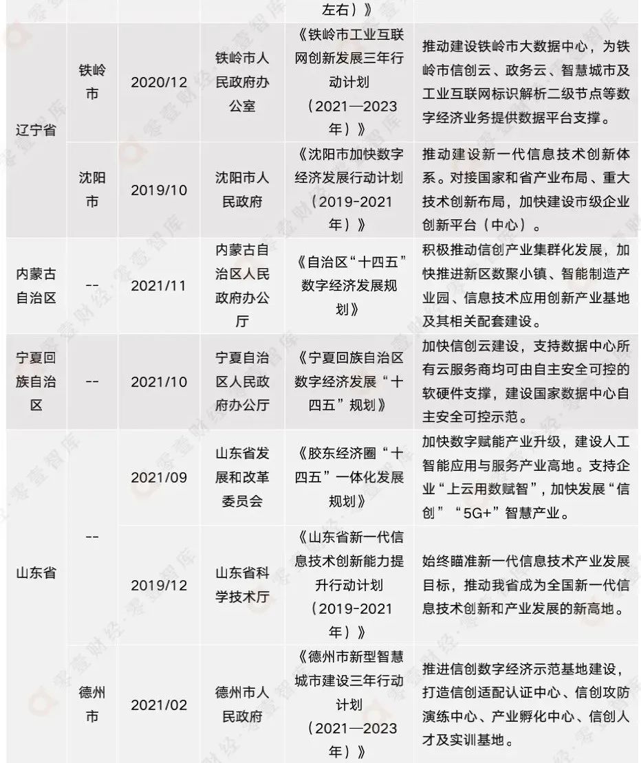 附錄二:全國各省市信創(chuàng)相關(guān)政策匯總(截至2021年12月)