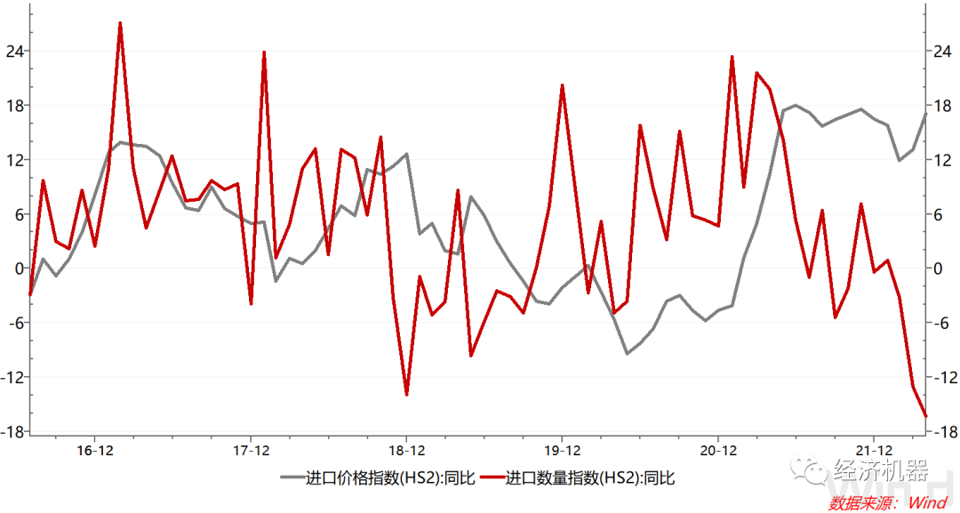 我國原油進口依賴度超70%,鐵礦石依賴超80%。進口增速的持續回升一部分由于進口需求的恢復,另一部分也可能與這與相關資源的儲備需求有關。不過整體上看,進口商品的高昂價格抑制了大部分商品的進口需求(圖5)。