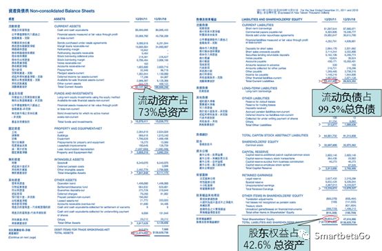 證券業(yè)經(jīng)營范圍主要是證券交易、證券發(fā)行、證券中介,收入結(jié)構(gòu)以手續(xù)費(fèi)和資本利得收入為主,杠杠相對較小。其負(fù)債端為借款(包括長短期),資產(chǎn)端的資產(chǎn)屬于主動管理的性質(zhì),依賴于機(jī)構(gòu)主動管理的能力,資產(chǎn)的流動性較佳但波動性較大。證券業(yè)對于資產(chǎn)負(fù)債匹配的需求較小。市場風(fēng)險是證券業(yè)主要的風(fēng)險。從下圖可以看出證券公司的資產(chǎn)負(fù)債表表現(xiàn)出以短支短、低杠桿比的特征。
