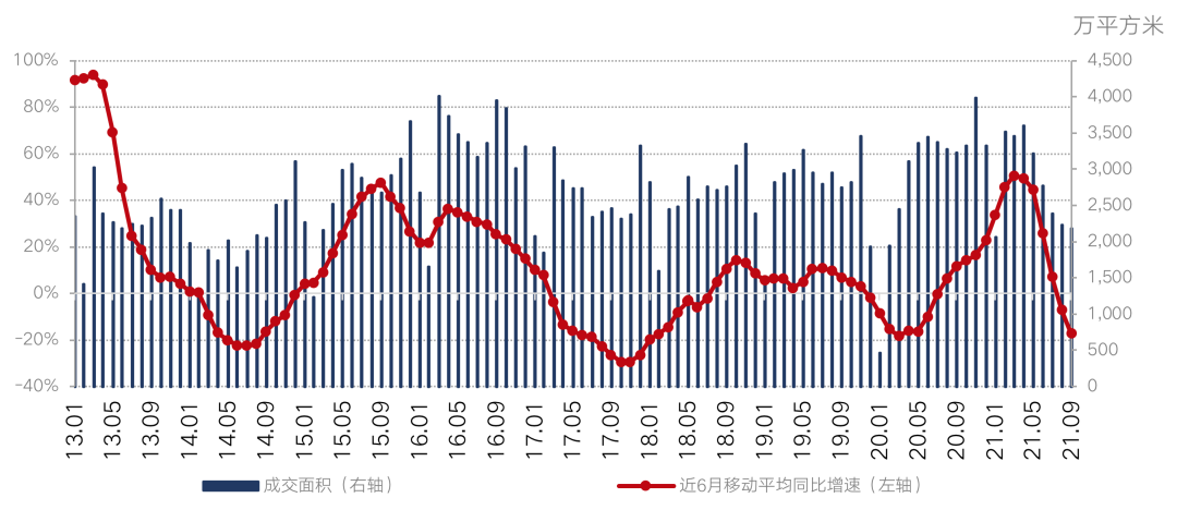 具體來看,2021年10月,易居研究院監(jiān)測的40個典型城市新建商品住宅成交面積環(huán)比下降1.9%,同比下降32.4%,創(chuàng)下2013年以來最差“銀十”,考慮到市場觀望情緒以及信貸政策尚未全面放松,預計接下來40城新建商品住宅成交量仍在探底,短時間內或將持續(xù)收縮。
