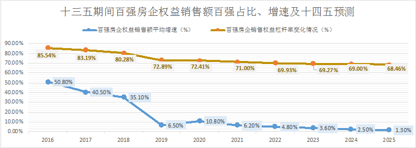 參考十三五期間百強房企權益銷售額增速的下降,預計十四五期間權益銷售額繼續呈現下降趨勢;
