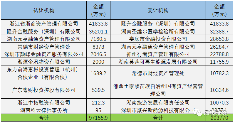 上表所示活躍記投資機構累計成交總額35億元左右,在二級市場受讓端比重達75%。浙商資管在湖南二級市場受讓端“一枝獨秀”。
