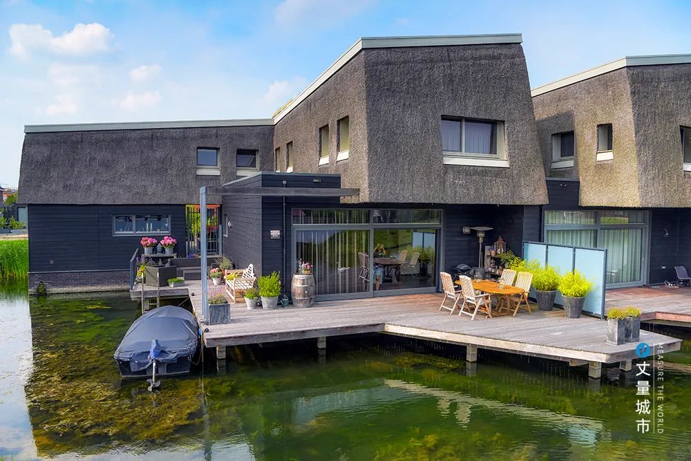 在鹿特丹東北部約6公頃的蘭斯蘭德住宅片區規劃了多類臨水住宅;區域將大面積水域和住宅建筑的進行巧妙融合,探索在水上或水岸居住的多種可能性。