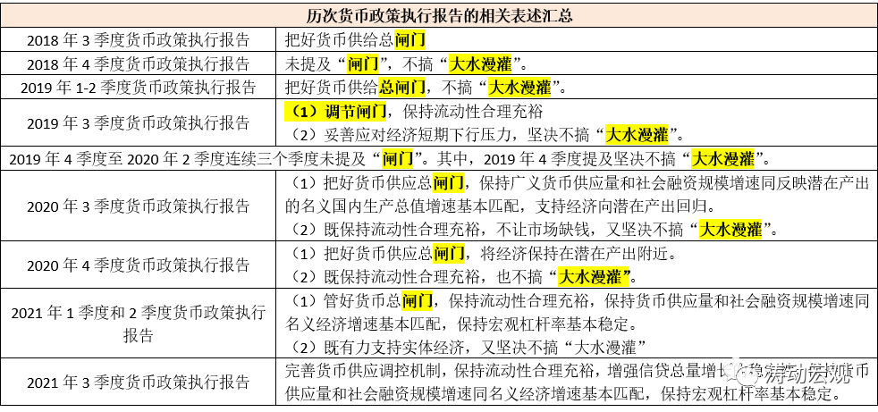 1、自2020年三季度貨幣政策報告提出“把好貨幣總閘門”和堅決不搞“大水漫灌”等表述以來,歷次貨幣政策報告均延續了這一表述,不過今年三季度貨幣政策報告刪掉了“管好貨幣總閘門”和堅決不搞“大水漫灌”這一表述,非常值得關注。特別是我們看到,央行同時提出了“完善貨幣供應調控機制,保持流動性合理充裕,增強信貸總量增長的穩定性”,意味著總量政策的地位在未來可能會進一步提升,貨幣向松的方向轉變已經非常明顯。