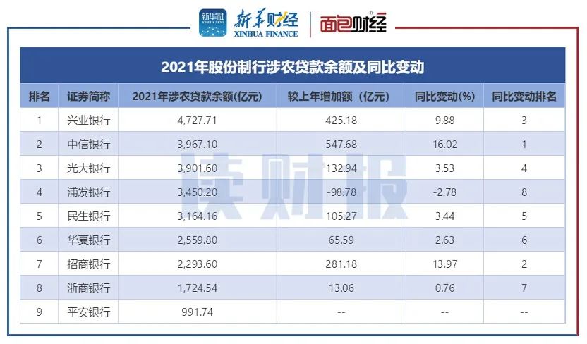 涉農(nóng)貸款:興業(yè)余額高,中信、招行增速快