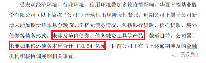 如果3月3日最終未能按時償付,“16華夏02”將是華夏幸福首只進行展期的債券。2021年3月1日,華夏幸福公告公司存在110.54億元債務逾期,但是未涉及境內債券、債務融資工具等產品。