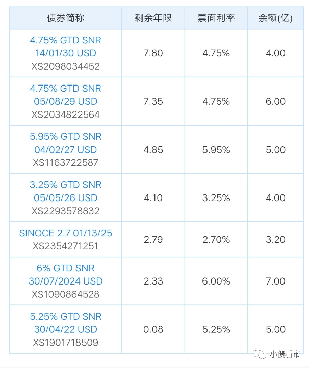 遠洋集團則存續8只美元債,存續規模42.2億美元,今年4月30日將有一只5億美元債到期。