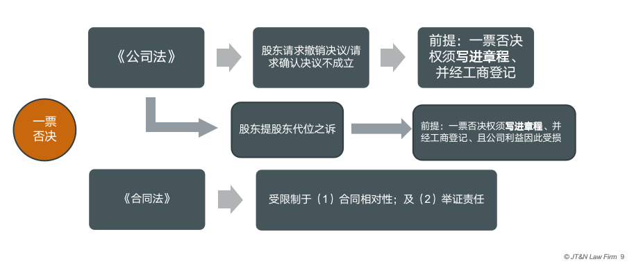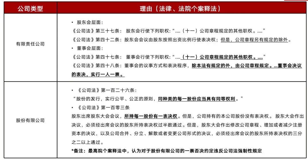 一票否決權(quán)的效力現(xiàn)狀,或曰其與中國(guó)目前法律體系的沖突我們整理如下圖: