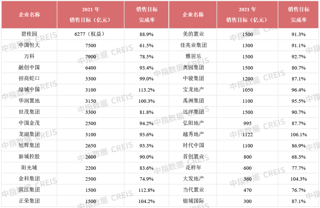 哪怕是龍頭房企,“碧萬融”的完成情況也不甚理想,三家房企在銷售額上穩坐前三甲,但目標完成率分別為88.9%、78.5%和93.4%,均未達標,在32家房企中處于中后位。恒大“最慘”,只完成了61.5%。