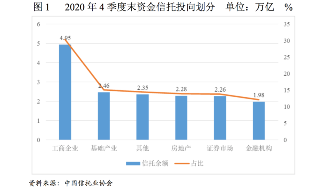 房地產(chǎn)行業(yè)一直是信托資金投向規(guī)模較大的領(lǐng)域,盡管信托規(guī)模受到壓降,但仍保持著較大規(guī)模。根據(jù)中國(guó)信托業(yè)協(xié)會(huì)(下簡(jiǎn)稱(chēng)“信托業(yè)協(xié)會(huì)”)發(fā)布的數(shù)據(jù),2020年4季度末房地產(chǎn)信托規(guī)模達(dá)到2.28萬(wàn)億元。以“偽投資”為包裝、明股實(shí)債的房地產(chǎn)投資類(lèi)信托在整體房地產(chǎn)集合資金信托規(guī)模中占比很大,是房地產(chǎn)企業(yè)信托融資的重要形式。在限制房地產(chǎn)信貸融資的大背景下,此類(lèi)“偽投資”信托產(chǎn)品悖于政策導(dǎo)向,成為監(jiān)管部門(mén)的限制對(duì)象。