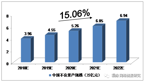 當前,我國不良資產市場規模繼續呈擴大之勢,預計2018-2022年不良資產規模均復合增長率約為15.06%,2022年將達到6.94萬億元。所以在目前以及今后的較長一段發展時間中,不良資產處置均會是金融領域重點關注和討論的話題。
