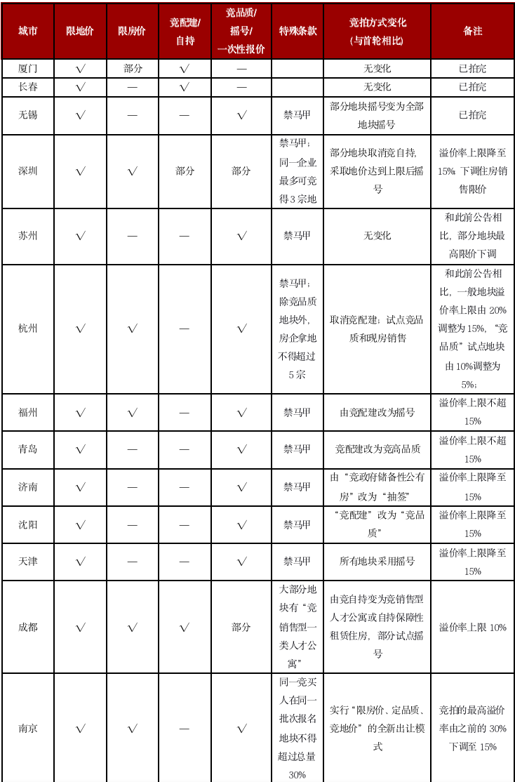 從重點(diǎn)城市第二輪集中供地來(lái)看,競(jìng)拍方式調(diào)整升級(jí)有三個(gè)明顯的變化: