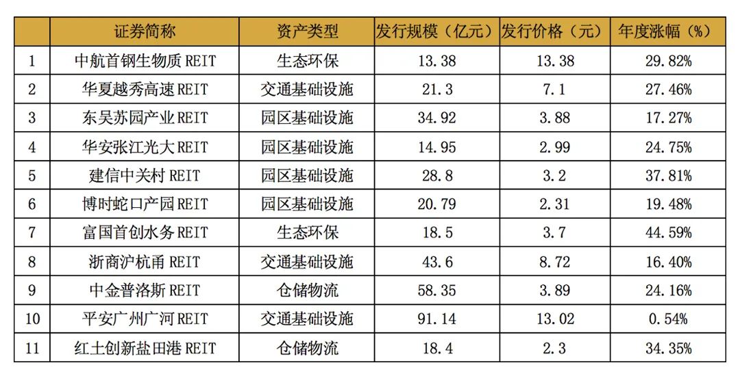 表1 國(guó)內(nèi)11支上市REIT發(fā)行情況