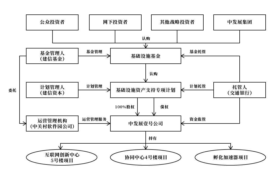 此外,項(xiàng)目公司向交通銀行申請(qǐng)4.61億元固定資產(chǎn)貸款,加上專項(xiàng)計(jì)劃給項(xiàng)目公司發(fā)放的貸款,共計(jì)20.02億元,用于償還項(xiàng)目公司對(duì)中關(guān)村發(fā)展集團(tuán)股份有限公司(以下簡(jiǎn)稱“中發(fā)展集團(tuán)”)原負(fù)有的債務(wù)。項(xiàng)目公司(基礎(chǔ)設(shè)施資產(chǎn))的原始權(quán)益人為中關(guān)村軟件園公司,控股股東為中發(fā)展集團(tuán)。
